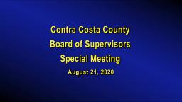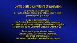 - Broadcast of the Contra Costa County Board of Supervisors meeting, held on August 11, 2020.